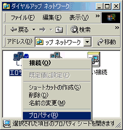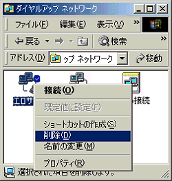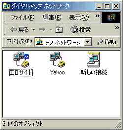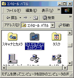 対策![]() | ■ [マイコンピュータ]->[コントロールパネル]->[ダイヤルアップネットワーク]をクリック! |