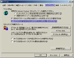 ■[ウィルスの可能性がある添付ファイルを保存したり開いたりしない(N)]にチェック |