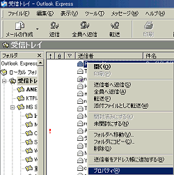 ■調査対象となるメールを右クリックし、[プロパティ]をクリック |