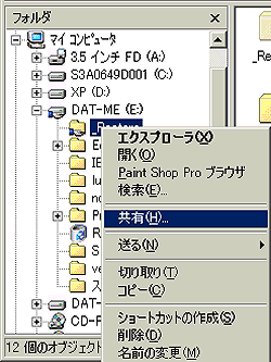 :ドライブの共有状態の表示 :フォルダの共有状態の表示共有されているドライブ、フォルダには手のマークがつきます。 |