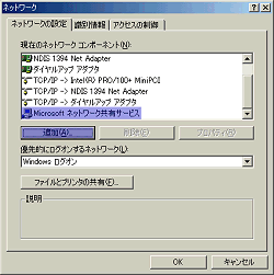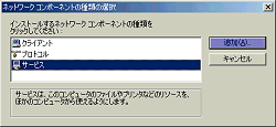 ![]() | ■ ネットワークコンポーネントの種類の選択 [サービス]をクリック [追加]をクリック |