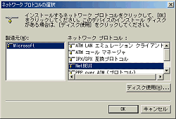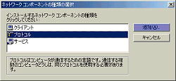 ![]() | ■ ネットワークコンポーネントの種類の選択 [プロトコル]をクリック |