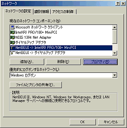 ![]() | ■ ネットワーク [NetBEUI]が追加されました。[NetBEUI]をクリック [プロパティ]をクリック |