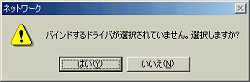 ![]() | ■ 警告 バインドするドライバが選択されていません。選択しますか? [いいえ]をクリック |