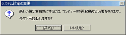![]() | ■ システム設定の変更 再起動の問い合わせに対して[はい]をクリック 再起動してください。 |
