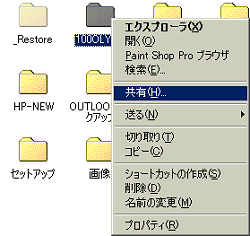 ![]() | ■ フォルダ・ファイルの指定 共有したいドライブ、フォルダにマウスを合わせて右クリック [共有]をクリック |