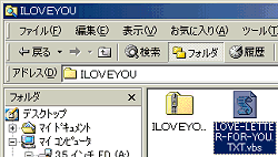 ■ 拡張子を表示した場合 実は、VBSファイルなのです。 LOVE-LETTER-FOR-YOU.TXT.VBS |