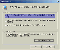 ■ [アップデートを自動的にダウンロードして、インストールの準備ができたら通知する(A)]にチェックを入れる。 ■ [OK]をクリック |