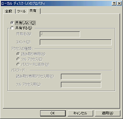 | 共有タブをクリックします。 共有しないにチェックし、適用をクリックしてください。 |