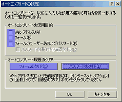 | 全てのチェックをはずします。 [フォームのクリア] [パスワードのクリア] もクリックしてください。 |