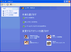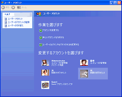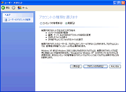 ■アカウントの種類を選択してください。 ・コンピュータの管理者 ・制限 一般ユーザは、制限を選択してください。 |