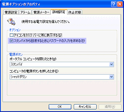 スタンバイから回復するときにパスワード入力を求める(P)にチェックしてください。