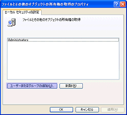 左に表示されているユーザ、グループが選択されたセキュリティポリシーを実行できる権限があります。 [ユーザまたはグループの追加]で追加できます。 |