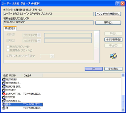 ユーザ名一覧が表示されました。 権限を与えるユーザ、グループをクリック! [OK]をクリックします。 |