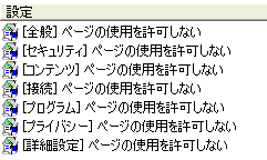 下記のようにインターネットのオプションの[詳細設定]タブ以外は、設定不可にしてみました。